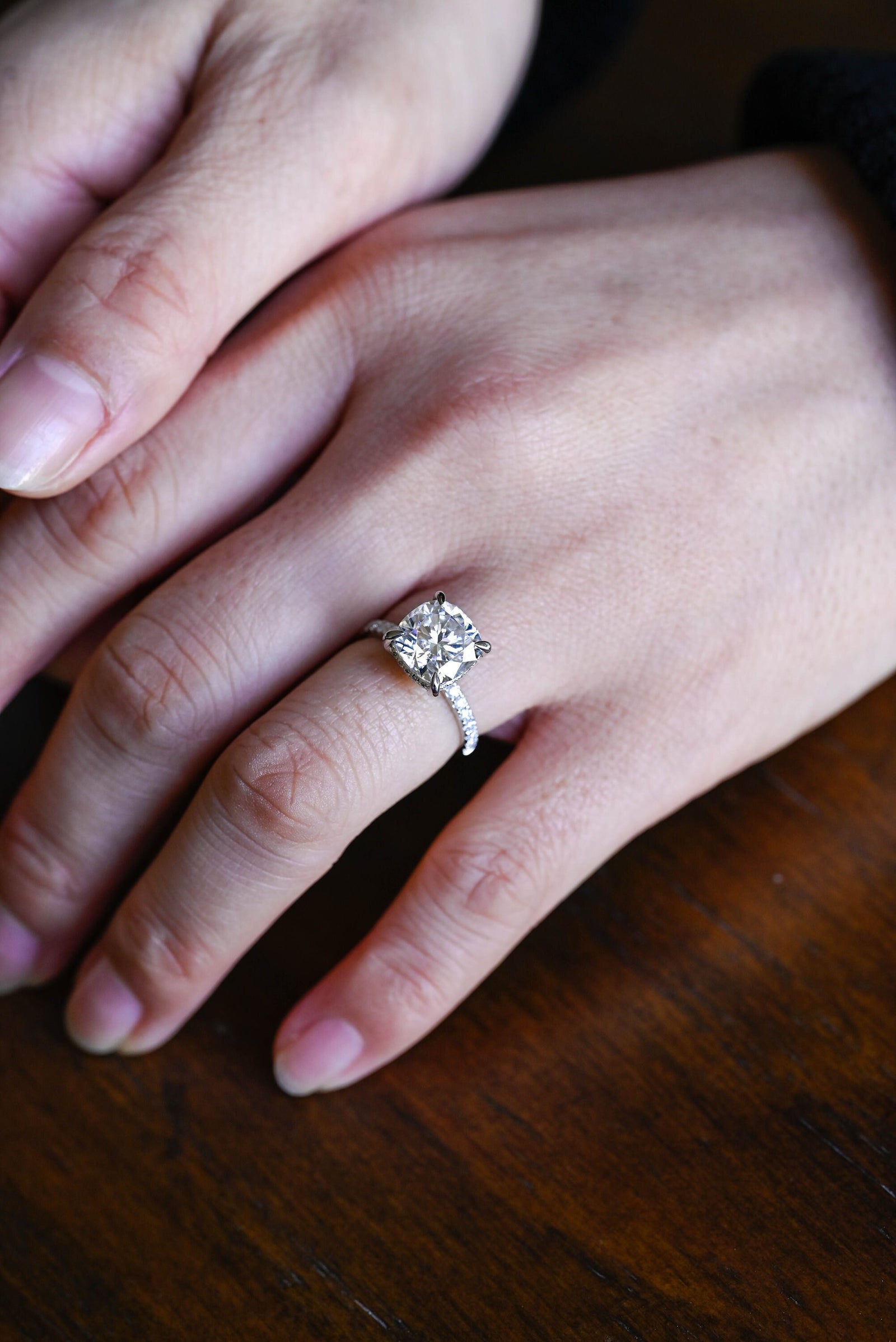 1.50ct-2.50ct Cushion Cut Lab Grown Diamond Hidden Halo Engagement Ring